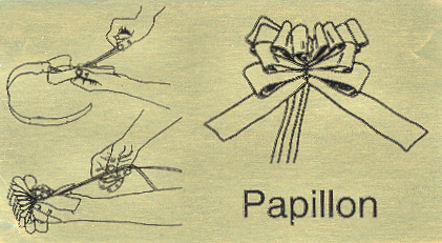 eine Schleife bildet - schmales Band verknoten - fertig.