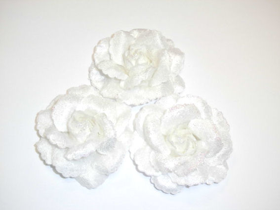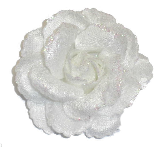 Produktinformationen "1 textile Rosenblüte, Ø ca. 7 cm, weiß mit irisierendem Flitter"