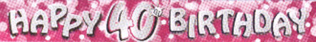 'Happy 40th Birthday', pink Sparkle-Banner, Prismatic/Hologramm**