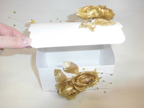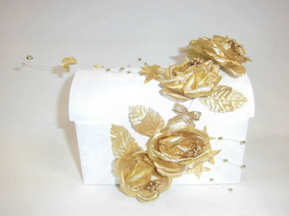 1 Stück 'Rosengirlanden-Truhe, gold' mit Dekoration z.B. für Geldgeschenke,