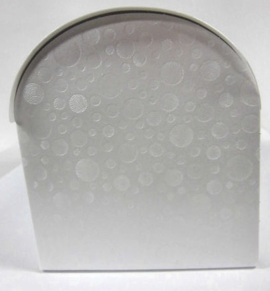 Sehr schöne Faltschachtel in Form einer Truhe / Schatulle in Perlmuttschimmer-Optik mit kleinen Punkten.