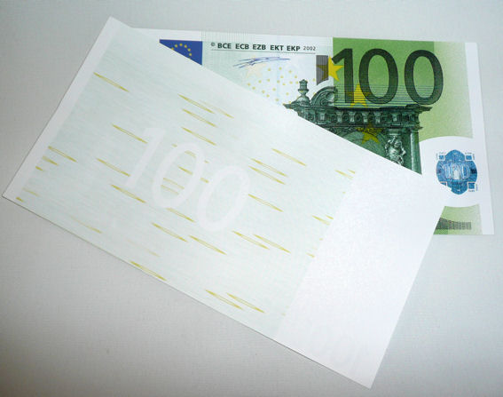 EURO-Ersatz-Scheine Wert 100, Größe ca. 185 x 97 mm, im 125 % Format.